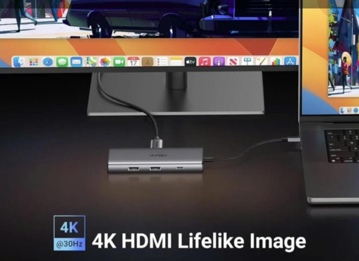 Bộ chuyển đổi USB-C sang USB-C PD+2USB-A 3.2+2USB-C 3.2+2HDMI hỗ trợ 4K Ugreen 45379