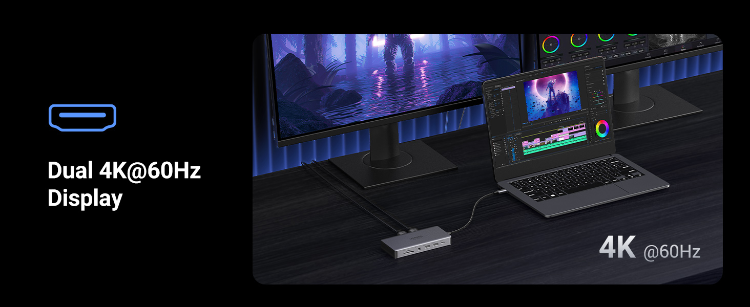 - Tối đa hóa tiềm năng USB-C của máy tính xách tay với 2 cổng HDMI, USB-C 10 Gbps, Cấp nguồn 100W, v.v