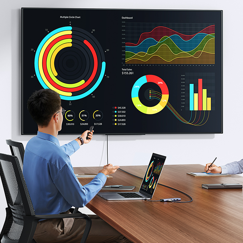 - Bộ chuyển đổi USB-C sang 3*USB 3.0+HDMI+SD/TF hỗ trợ 4K Ugreen (20956): hỗ trợ 4k@30Hz với cổng USB C sang HDMI. Thưởng thức những bộ phim trực quan ấn tượng, các cuộc họp trực tuyến độ phân giải cao hoặc mở rộng màn hình của bạn để có những bài thuyết trình kỹ thuật số vô cùng hấp dẫn.