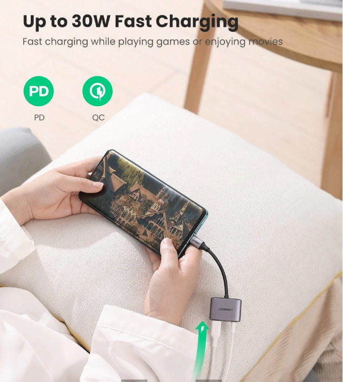 - Cáp chuyển âm thanh Type C to 3.5mm + PD sạc Ugreen 60164 chất lượng âm thanh chân thực và tự nhiên, không bị méo tiếng, hỗ trợ đầu ra âm thanh lên đến 24-bit / 96kHz. Hoạt động hoàn hảo với các thiết bị âm thanh của bạn.