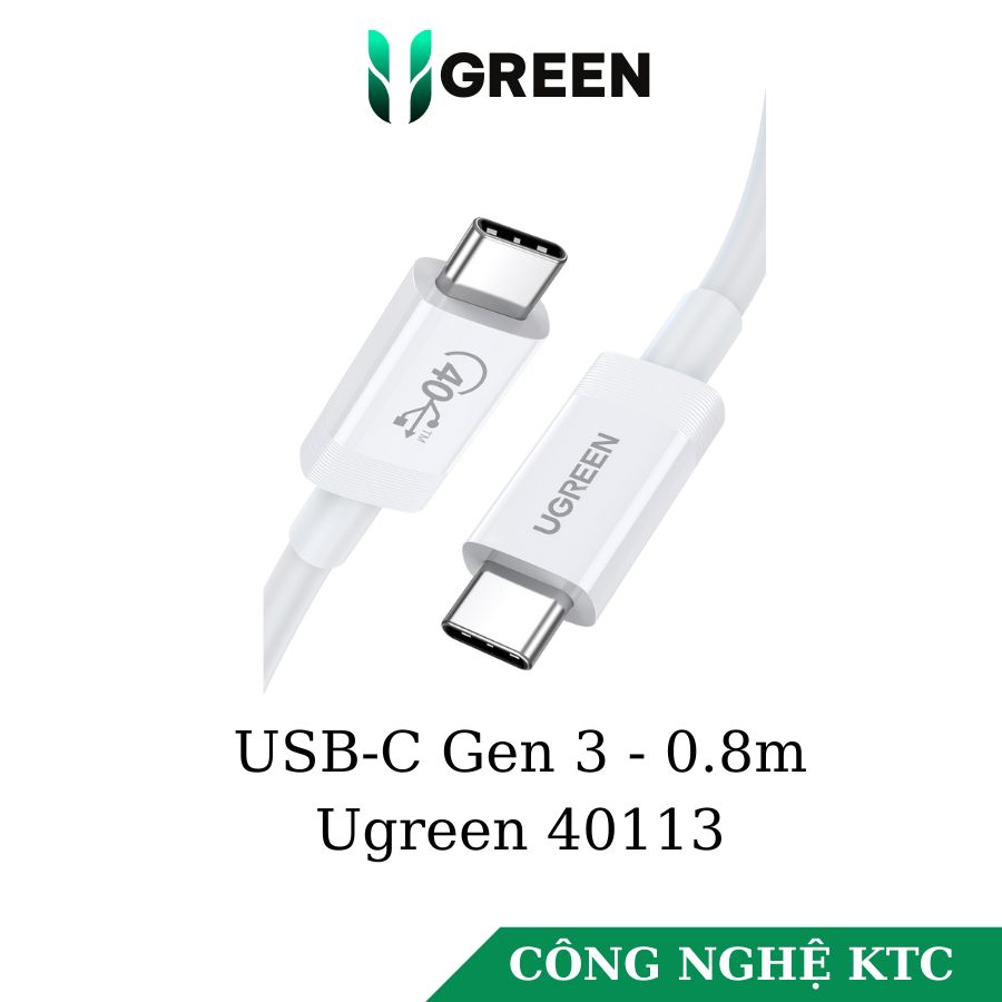 Cáp USB-C Gen 3 dài 0.8m hỗ trợ 8k + PD100w + truyền data 40Gbps Ugreen 40113