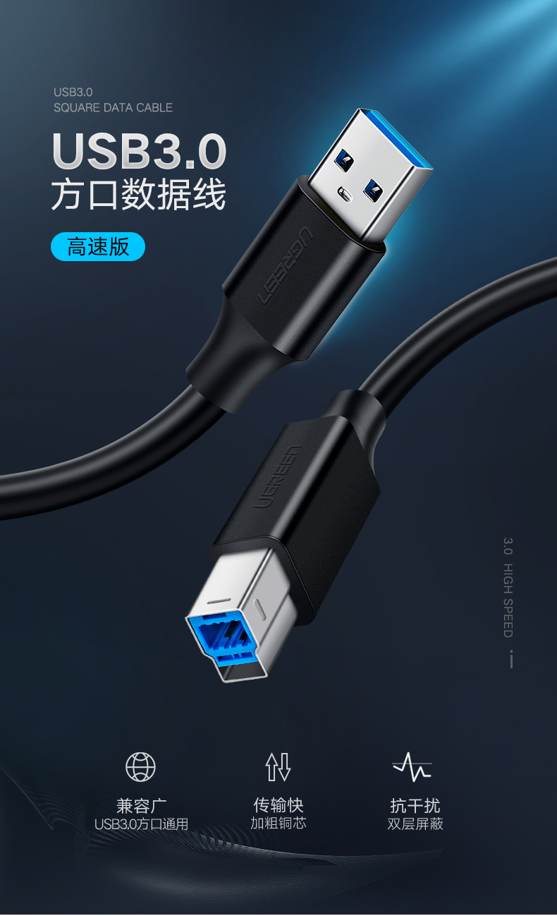 - Cáp máy in usb 3.0 AM to BM 2m ugreen 10372 để kết nối với máy tính hoặc máy tính xách tay để HD-DVD / bộ nhớ điện thoại di động liên lạc bằng đồng mạ vàng giảm thiểu mất mát dữ liệu