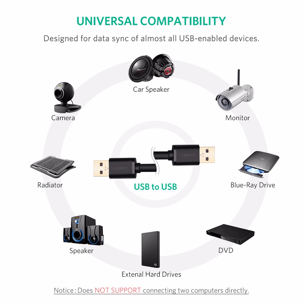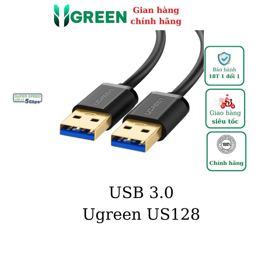- Cáp USB 3.0 3m Ugreen 90576 dùng kết nối từ máy tính đến các thiết bị ngoại vi loại 3.0 để chuyển file một cách nhanh chóng.