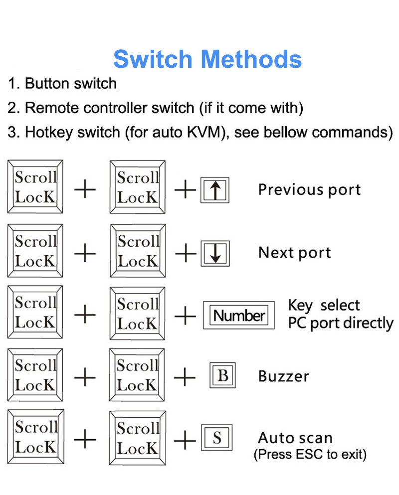 - Có 1 nút select để lựa chọn điều khiển với từng case máy tính. Lựa chọn máy tính thông qua phím nóng, nút bấm và bộ điều khiển máy tính để bàn