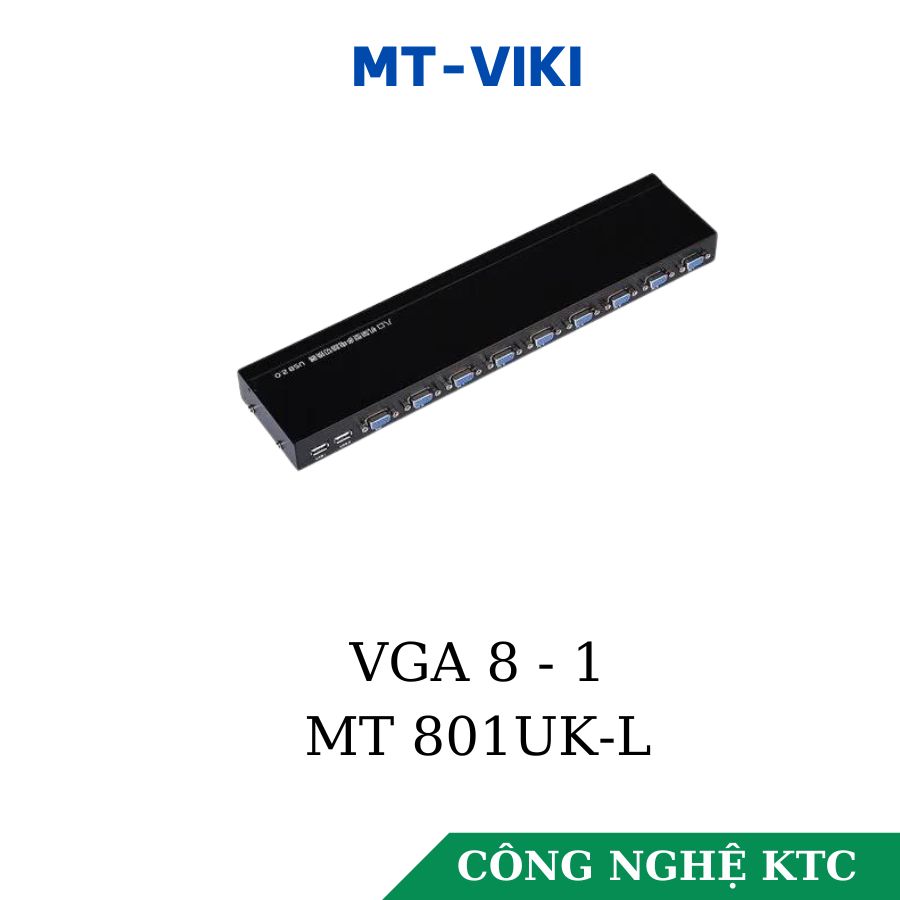 - Bộ chia VGA 8 ra 1 có KVM MT-801-UK-L là bộ chuyển mạch cho case máy tính sử dụng chung một màn hình, một bộ phím chuột cổng USB, một máy in