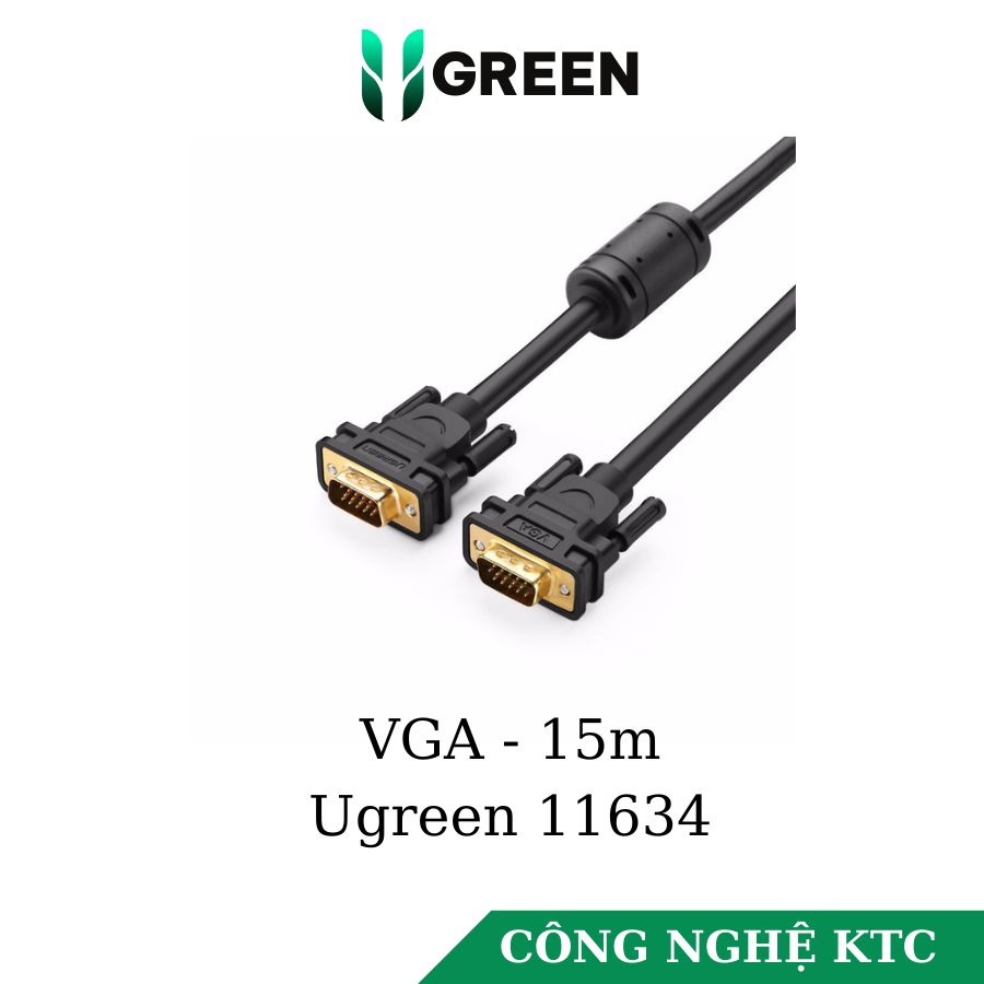 - Cáp VGA 15m ugreen 11634 sử dụng cho máy tính bàn, laptop, máy chiếu, màn hình LCD, Camera DVR...